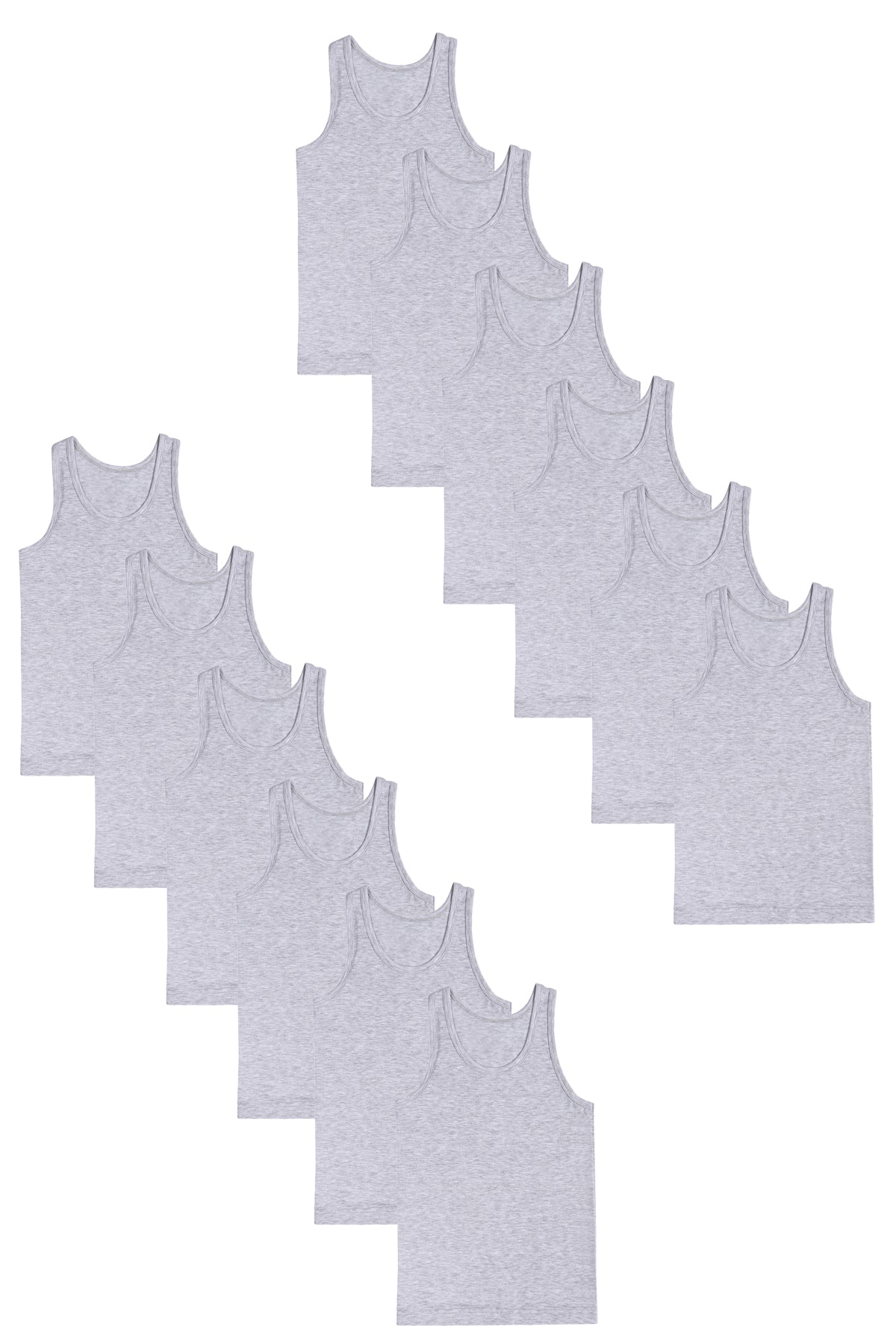 Erkek Gri 12'li Pamuklu Penye Atlet