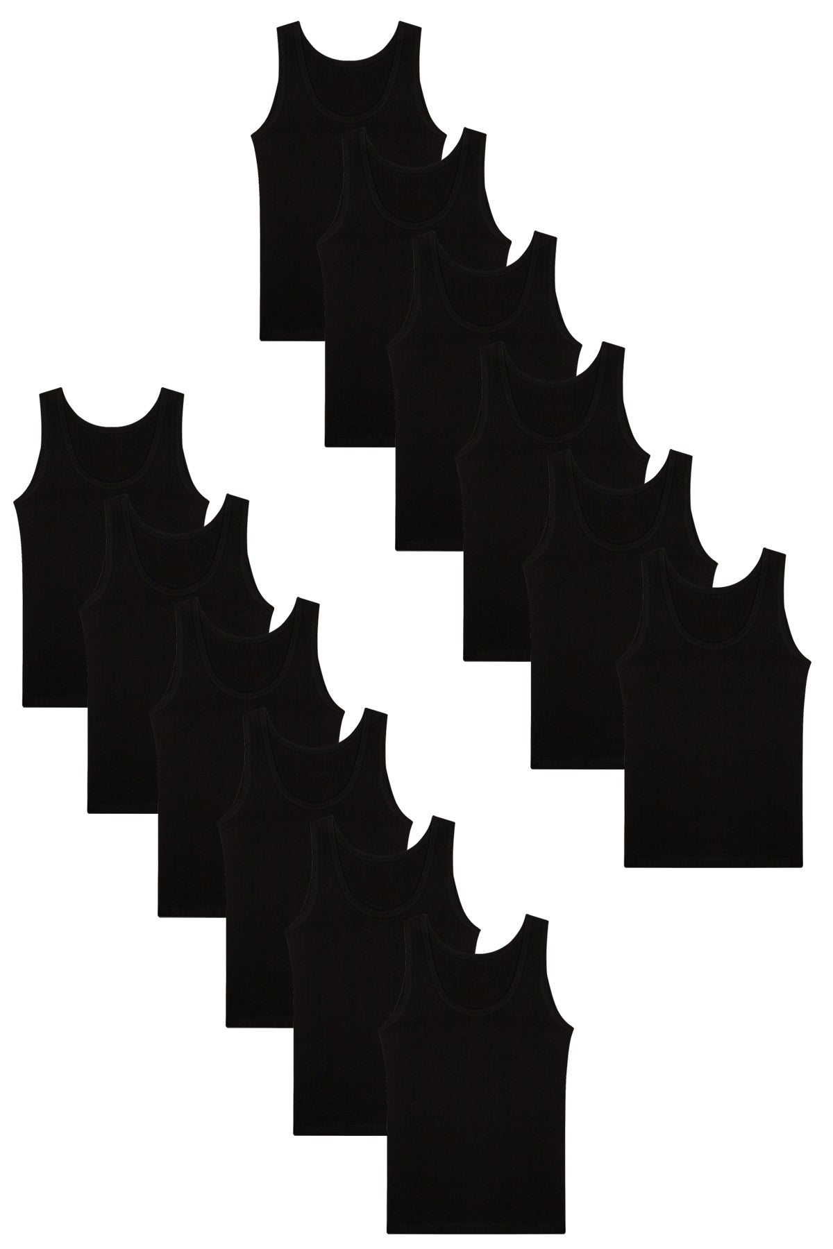 Erkek Siyah 12'li Pamuklu Penye Atlet